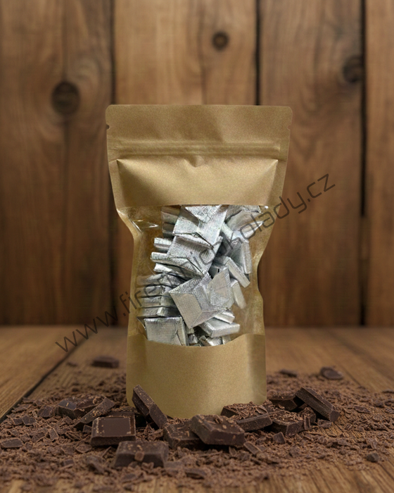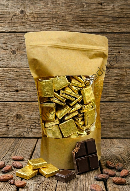 Složení hořká čokoláda/obsah kakaové sušiny min. 53% (kakaová hmota, cukr, kakaové máslo, emulgátory: sojový lecitin a E476, aroma: přírodní vanilka)